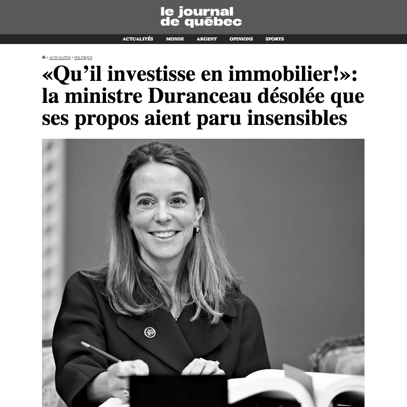 [Les locataires qui voudraient céder leur bail feraient mieux] «d'investir en immobilier et prendre les risques qui vont avec» (France-Élaine Duranceau, ministre responsable de l'Habitation)